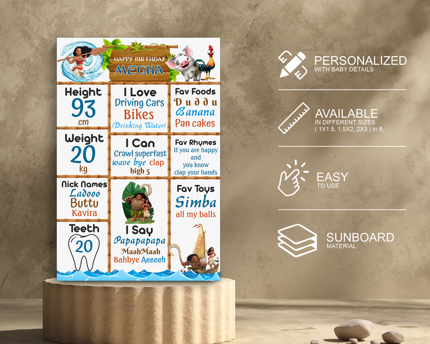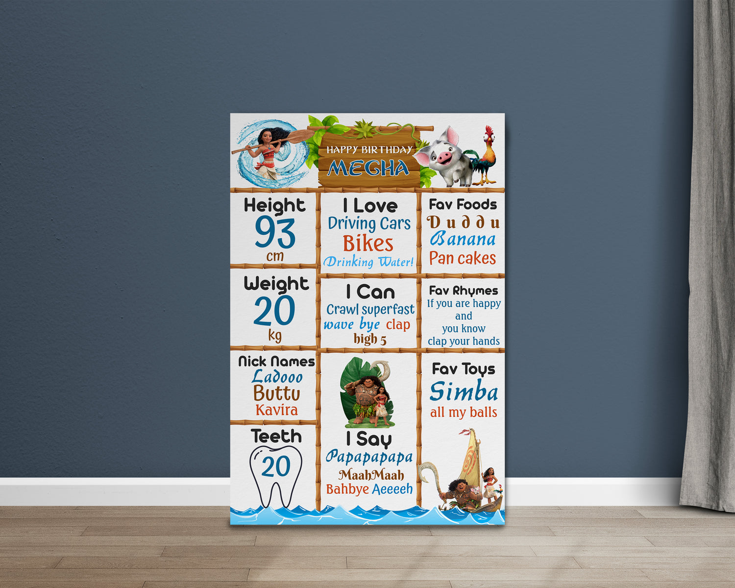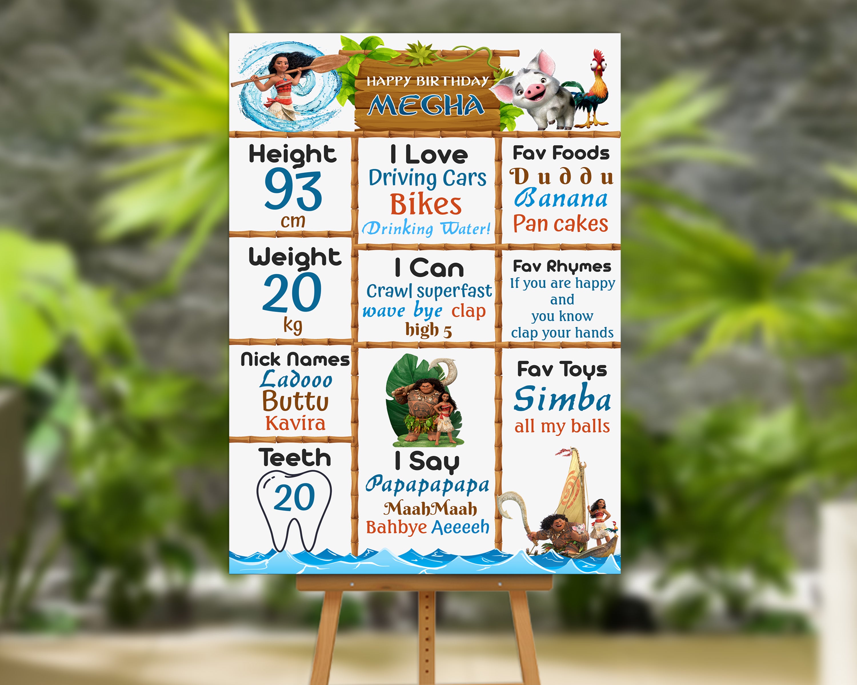 Chalk Board is a great way of cherishing the baby's likes, the milestones in their growth. A Chalk board would be a gift for your kid forever. Based on the Moana, you can help us customize it with fine details. You can also choose the pictures .