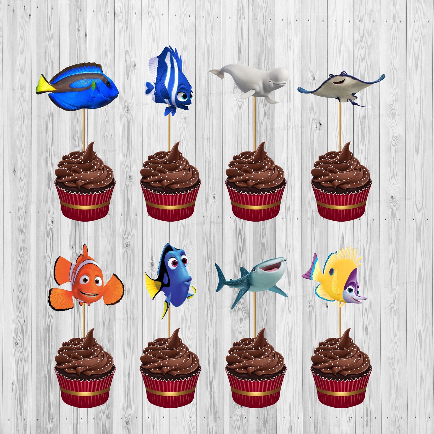 Have your cupcakes, and decorate it too with this Nemo, Dory and friends in different poses! Ideal for kids ages 8 and under, this set features 8 cupcake toppers with the typical pictures of all underwater animals that you come across in the movie.
