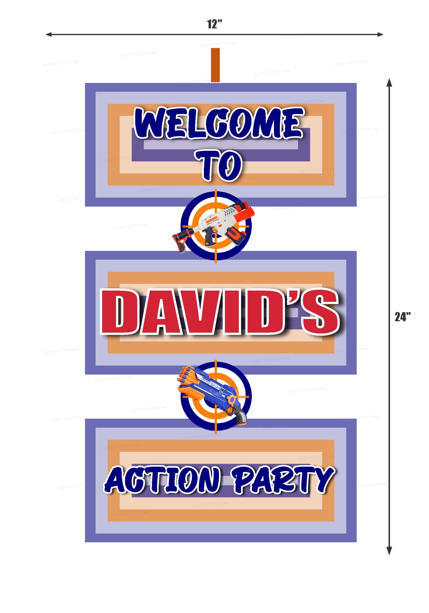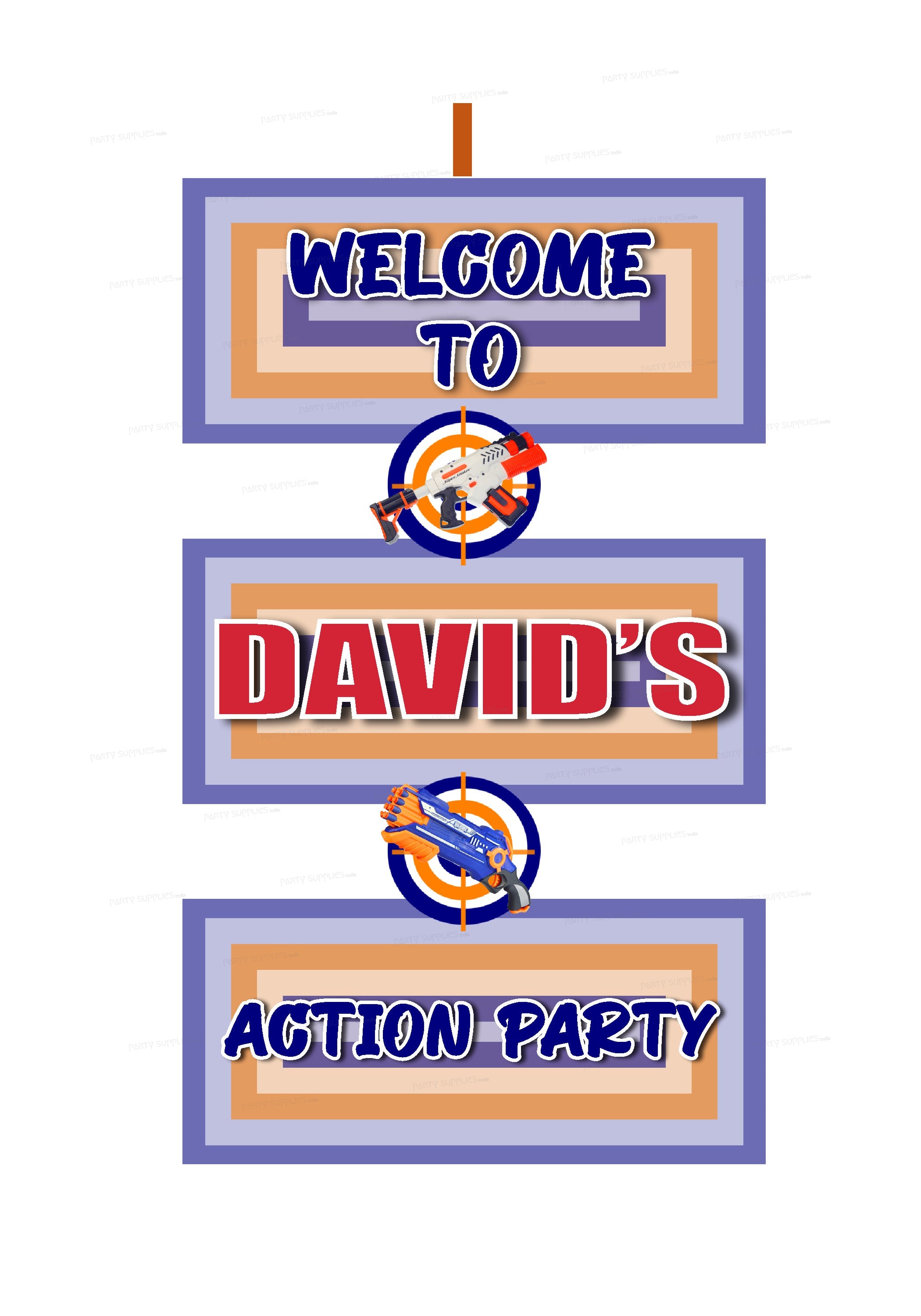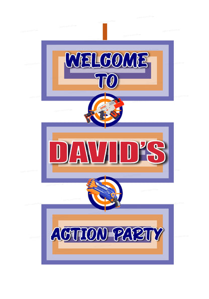 Use this Personalized Nerf theme based Door poster to notify the event location and welcome the guests for the celebration.
