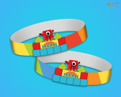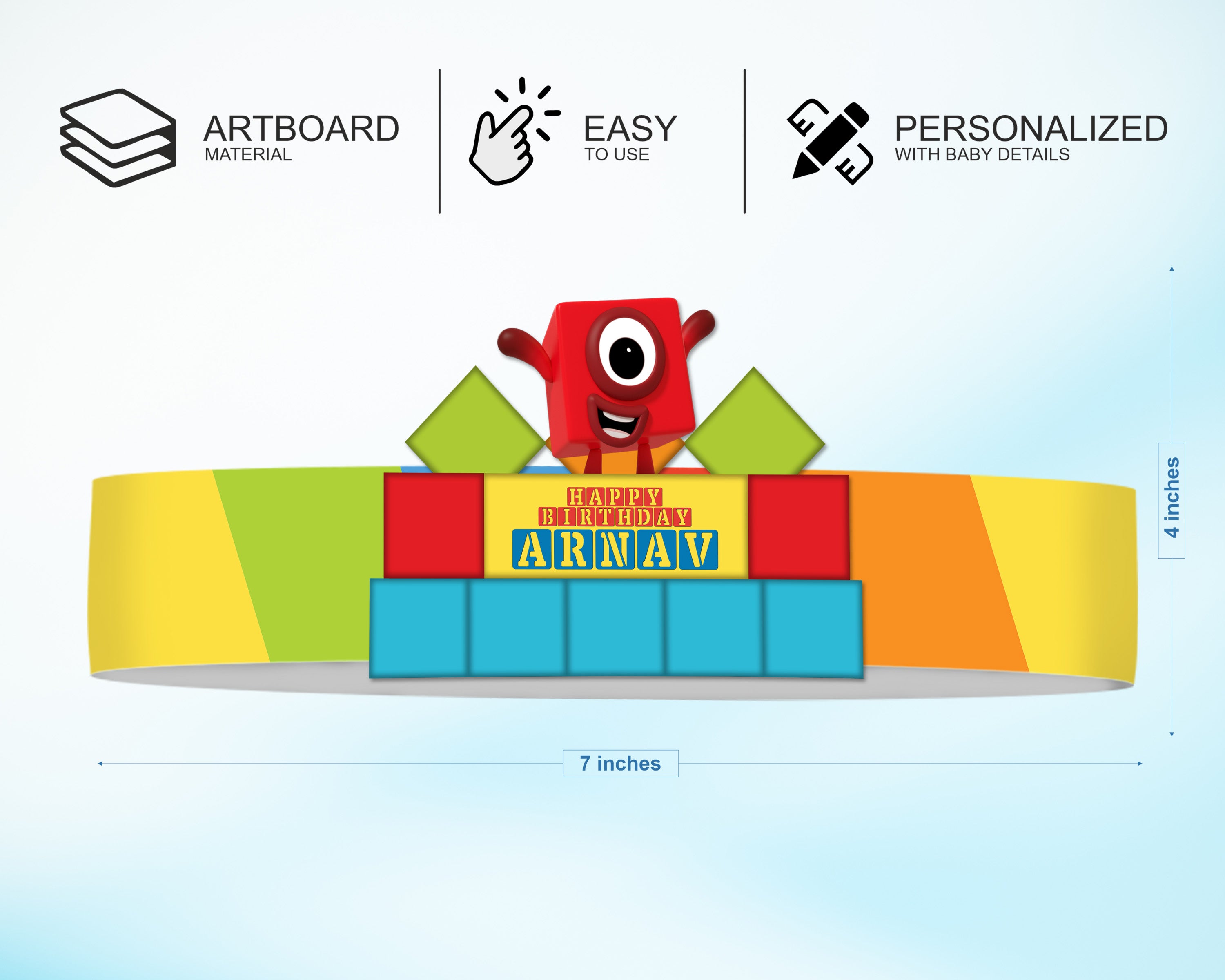 A personalized crown hat based on the Number Blocks theme, made of thick paperboard material, is ideal for celebrating kids' birthday parties.