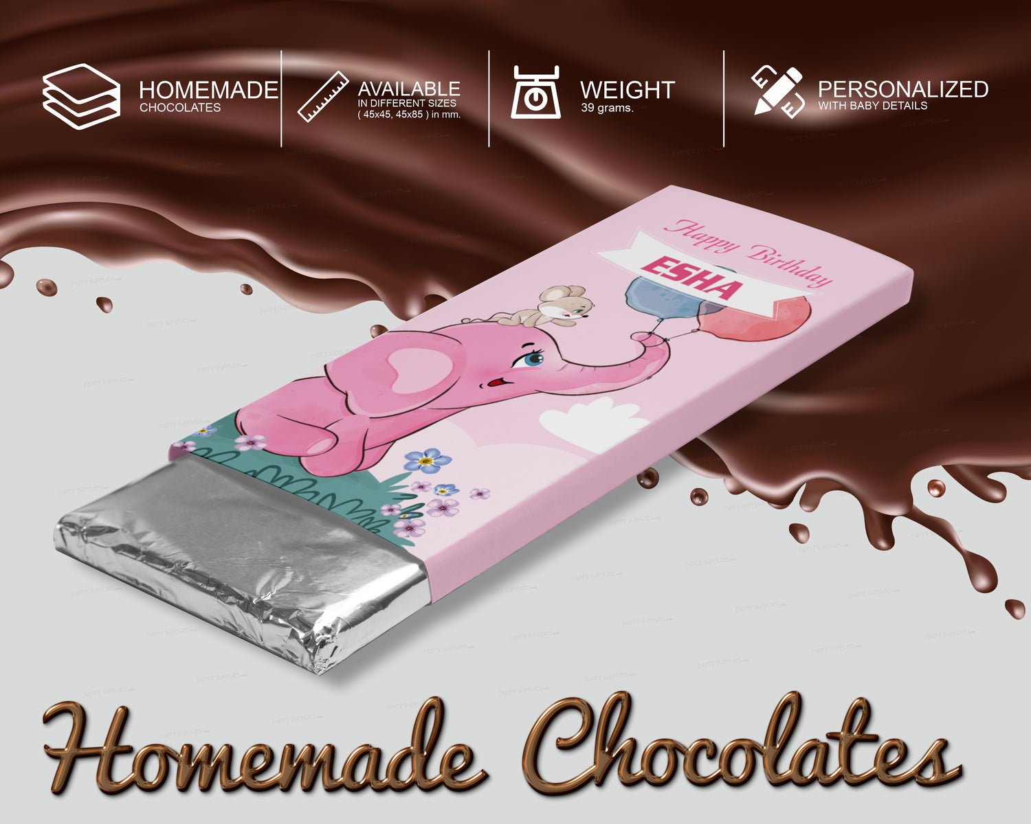 Pink Eelephant Theme Home Made Chocolate Return Gifts