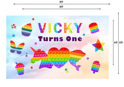 This Pop It Theme customized Backdrop will be exact find for the colourfull decoration. It comes with different variant sizes.