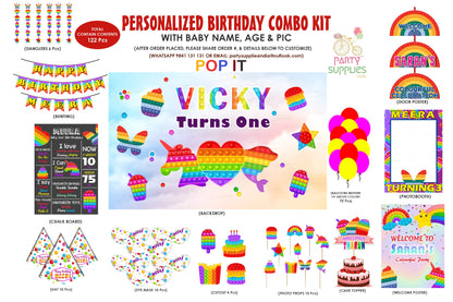 Pop It Theme combo kits will make celebrating your fun moments and there be a perfect combo products to create a memorable day and amazing experience, yourself and your family Add a perfect touch to your kids party with our beautiful customized party combo