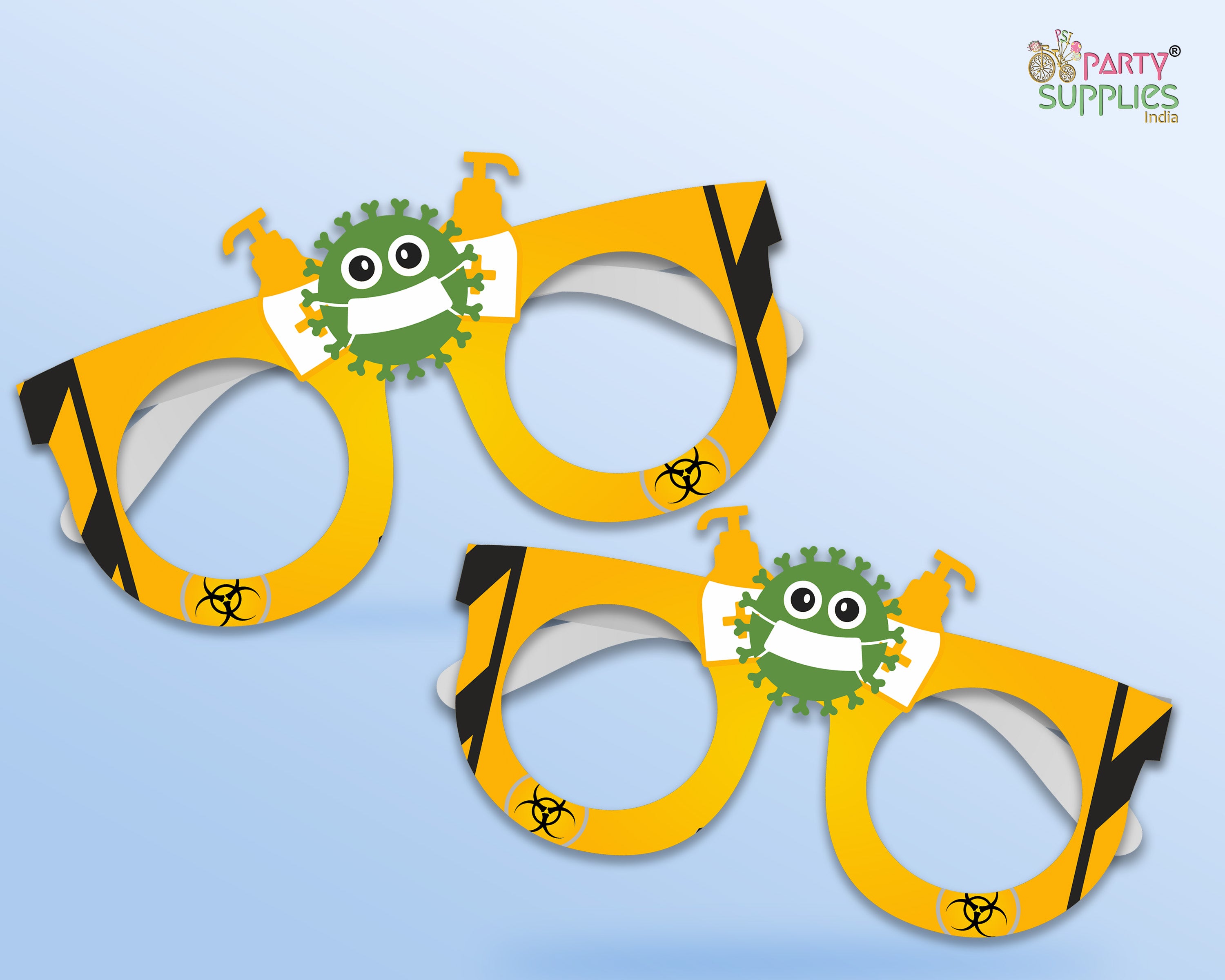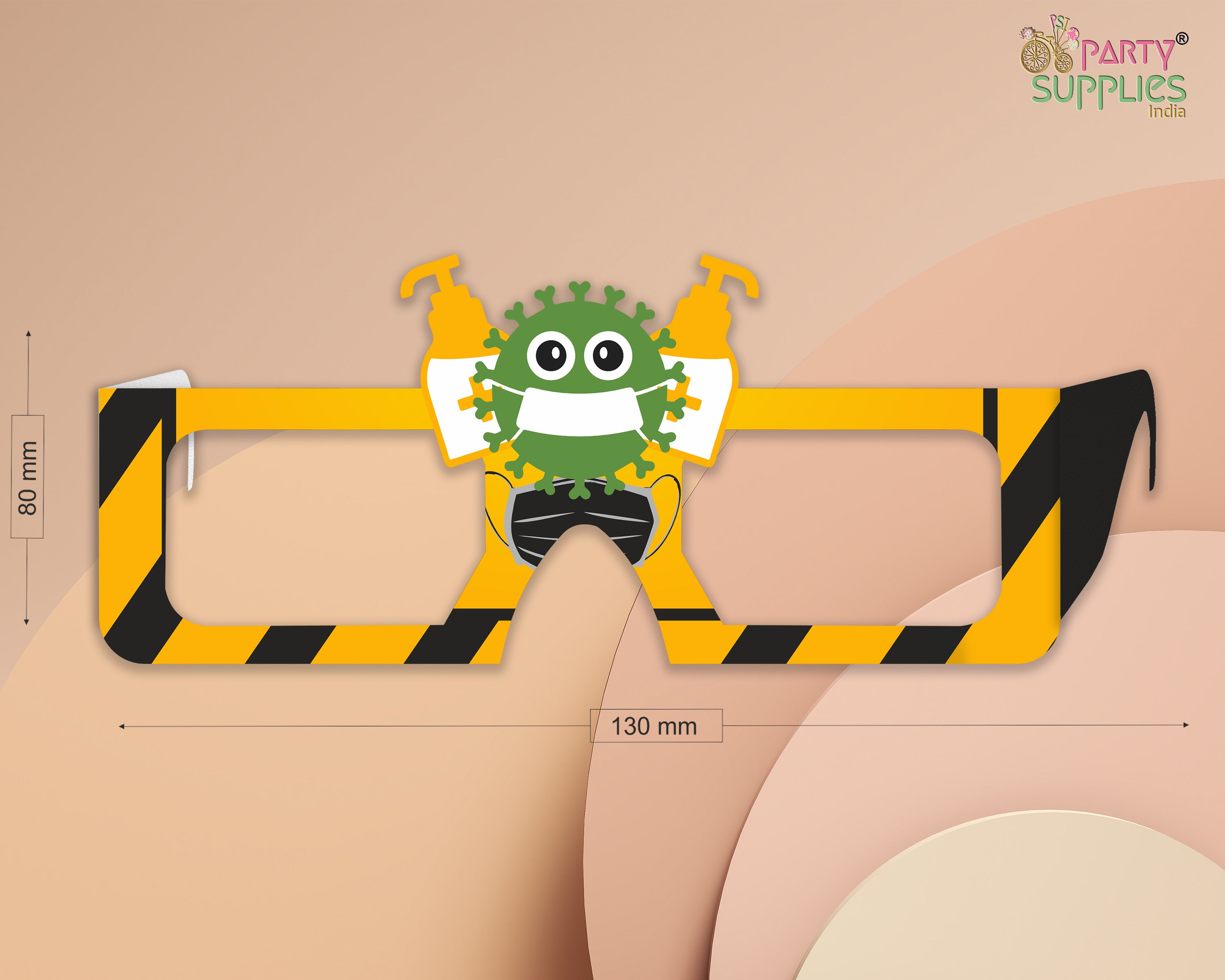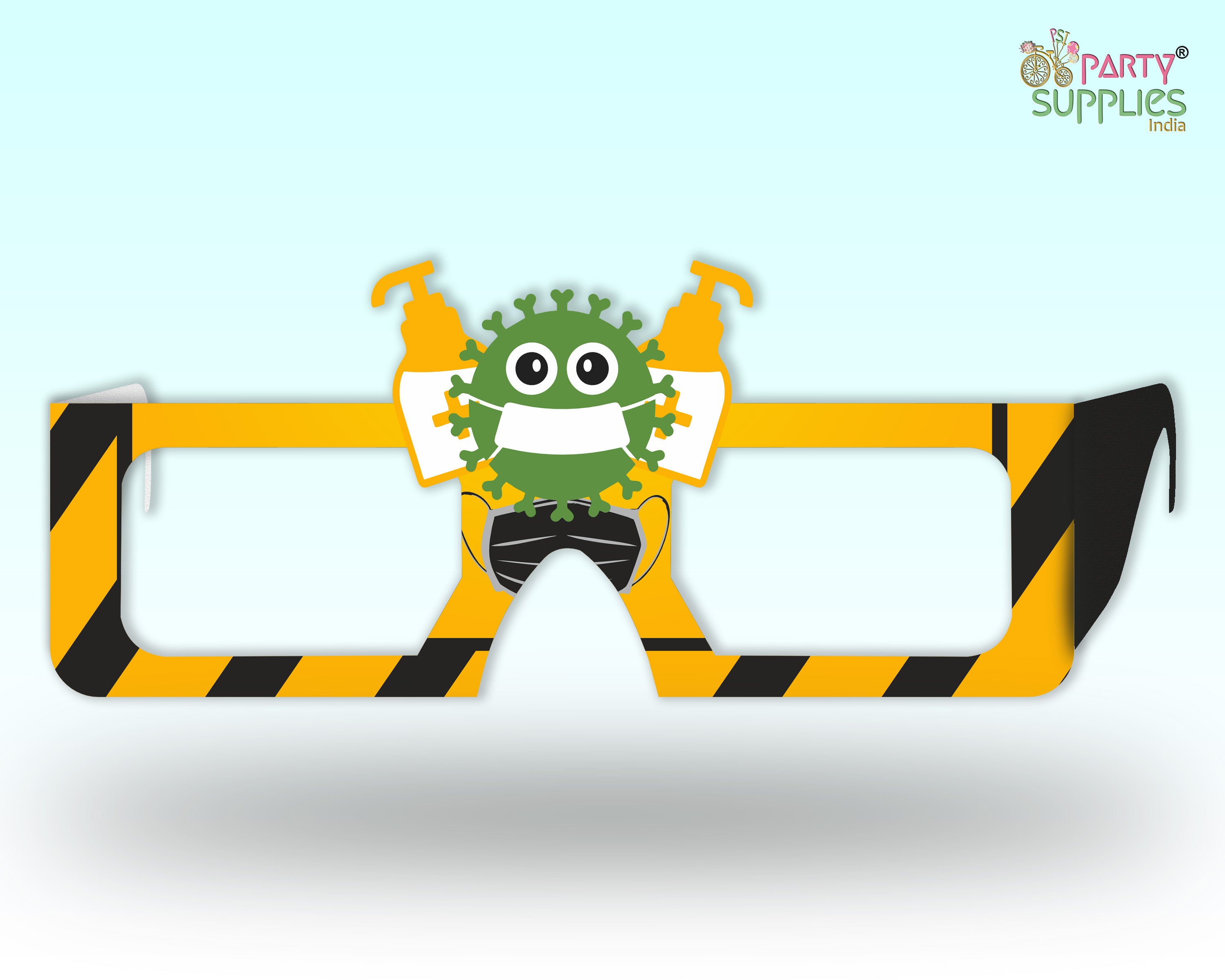 Quarantine Theme based eye glasses made of thick paper material for kids birthday party celebrations. This paper goggles suits perfect for kids.