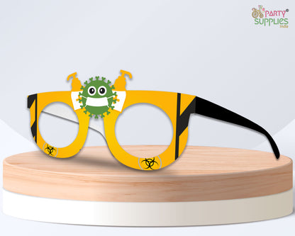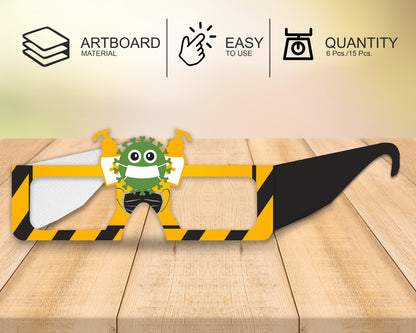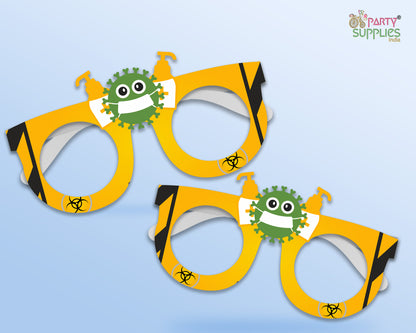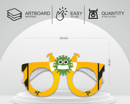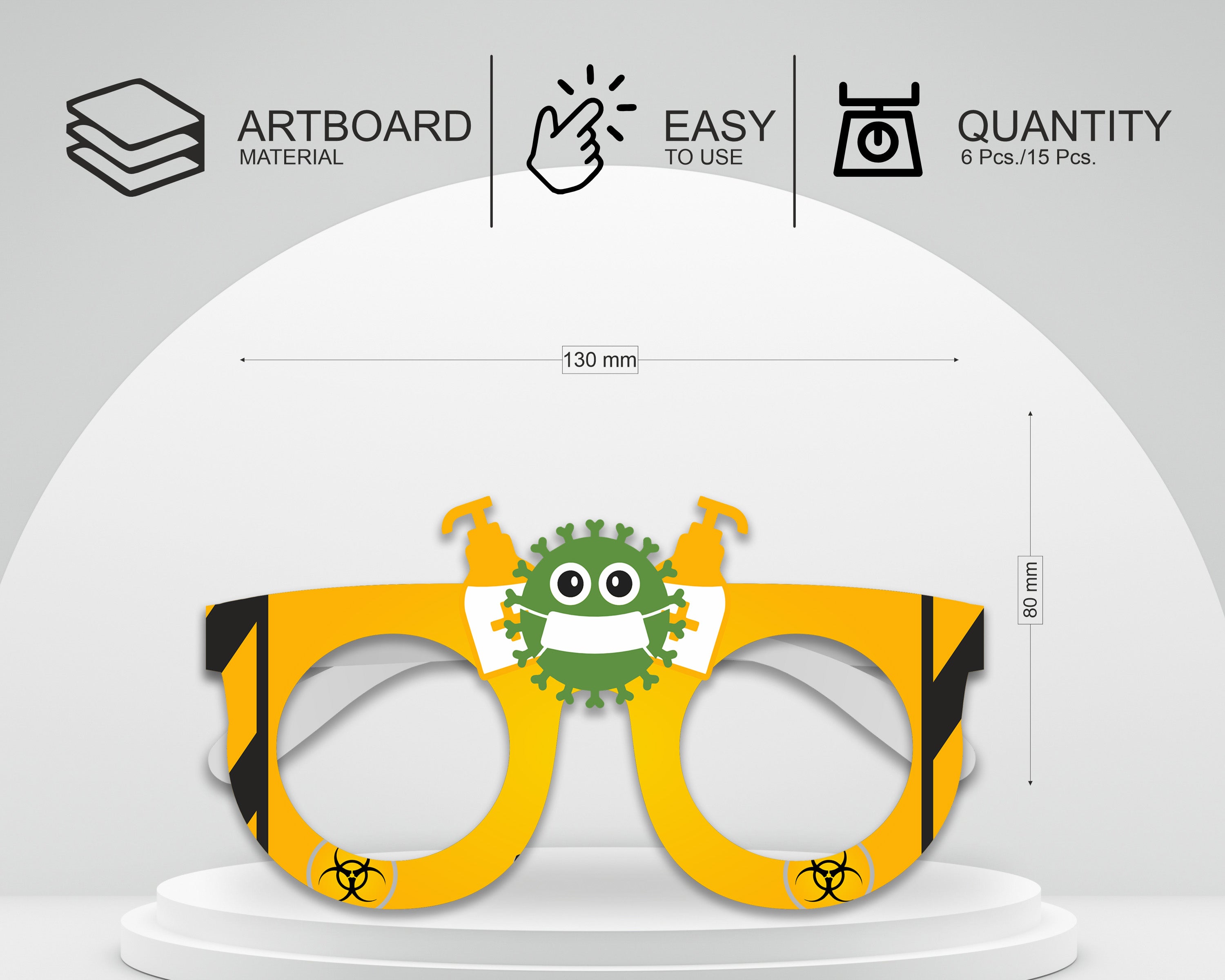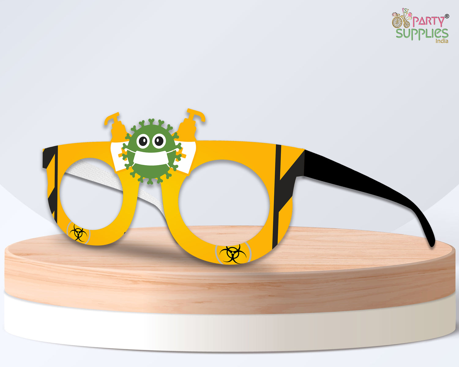 Quarantine Theme based eye glasses made of thick paper material for kids birthday party celebrations. This paper goggles suits perfect for kids.