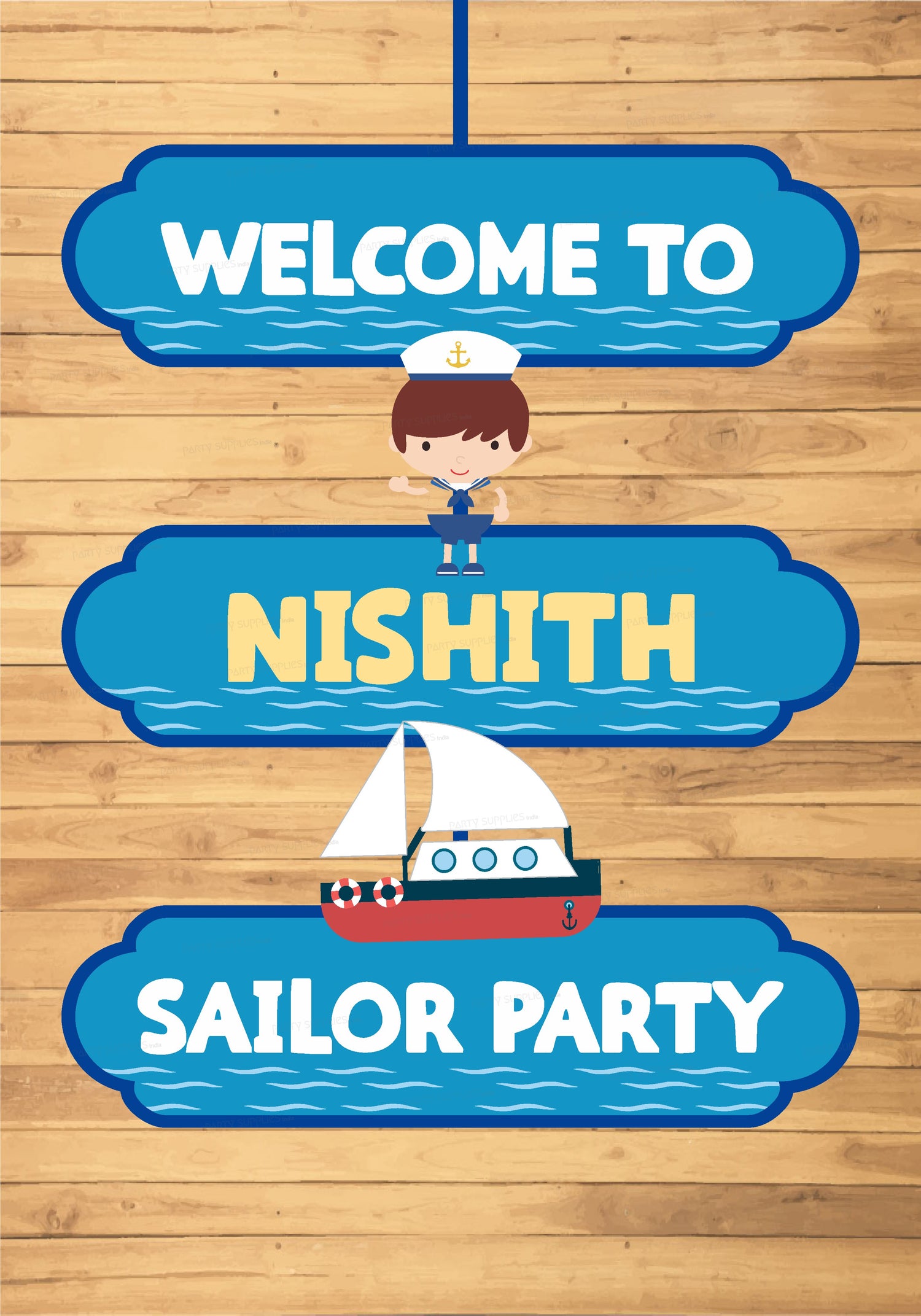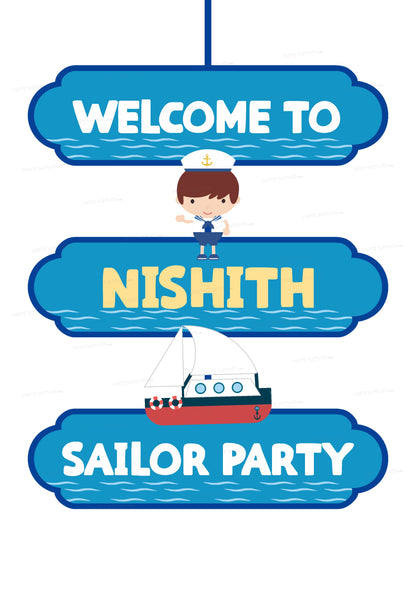Direct guests to the party with a custom Sailor themed door sign. The colorful sign features a Sailor Boy, Ship along with space to add a personalized message.