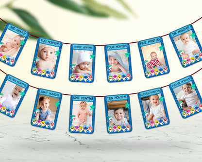 The Shark theme based photo banner is perfect decoration for baby's 1st birthday party. It’s an eye-catching birthday banner with beautiful color, especially with lovely photos of your baby on it which is a special way to bringing a unforgettable and memorable party. This 12 Months Birthday Banner is made of 225 GSM quality Art board material. This package contains 1 set photo banner with ribbon. Size of each month banner will be 6 inches of width and 9 inches of height.
