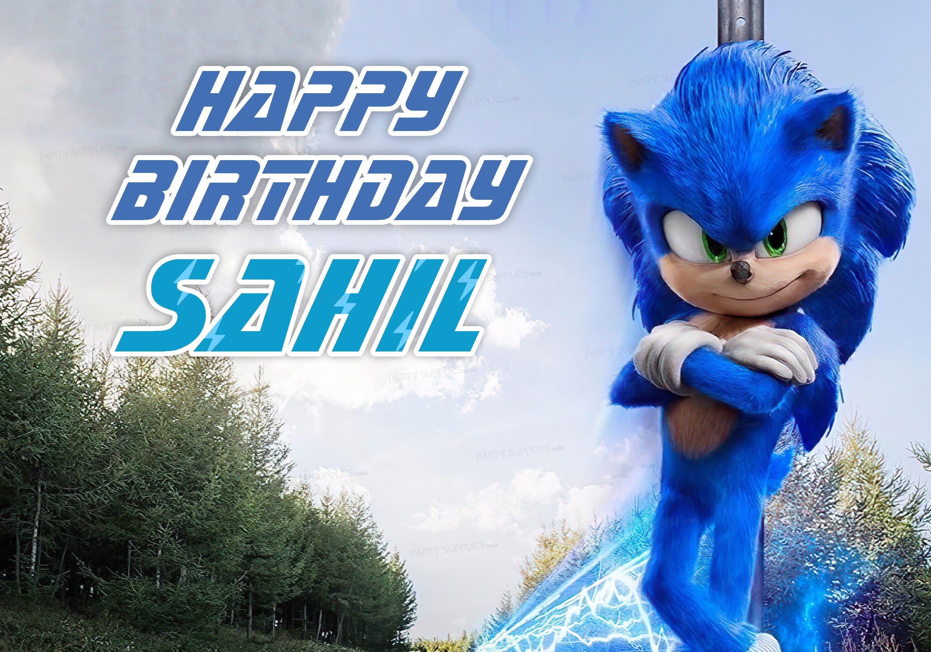 Set up a one of a kind stage with a custom Despicable Me back drop. This vinyl stage decoration features friendly Sonic the Hedgehog, a star-studded and confetti-filled background, and space to add a customized message.