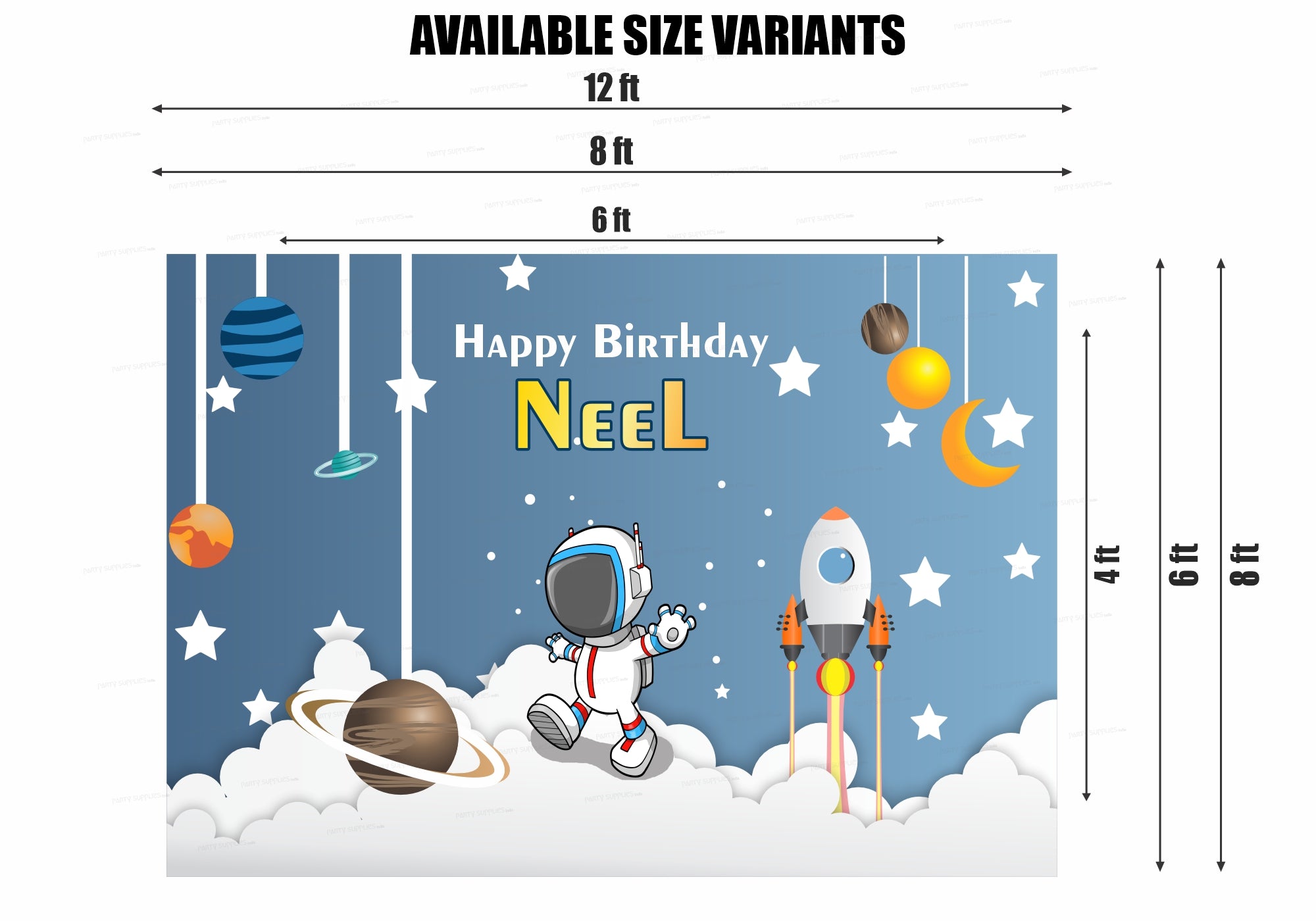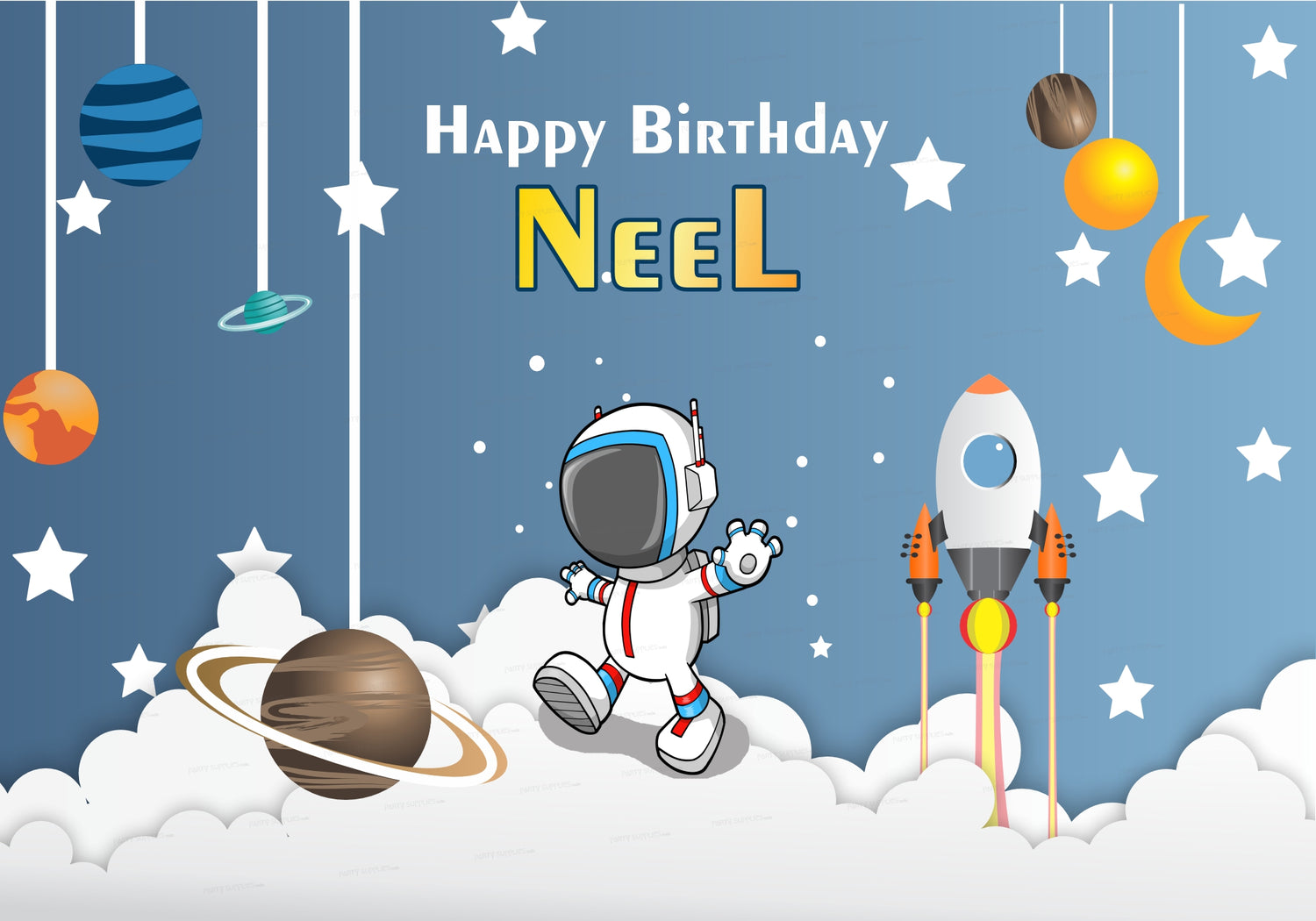 Get set to blast off into a new year with your little one! Personalized space themed birthday backdrops are the perfect addition to any outer space or "To The Moon" birthday party. Personalise it with your kid's name.