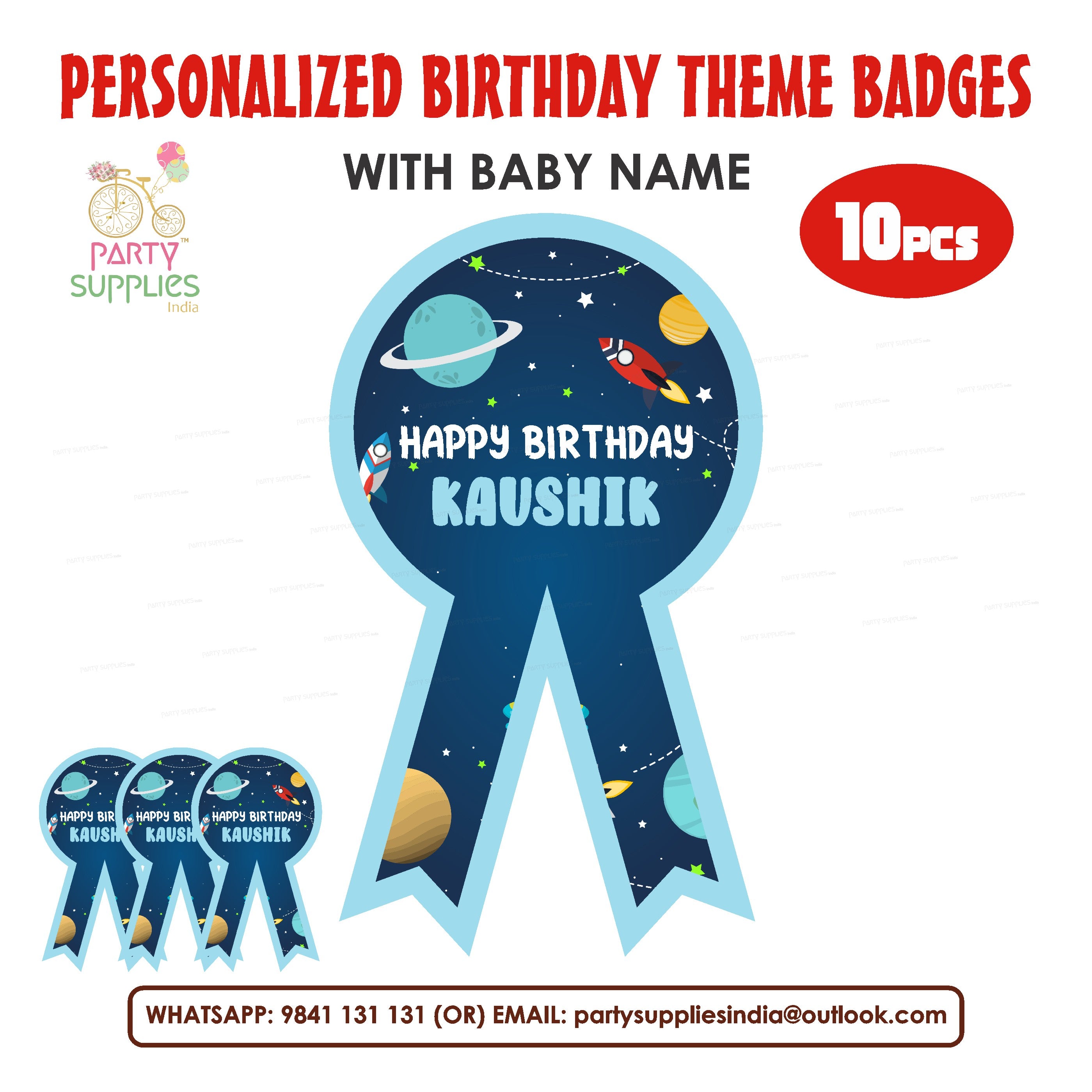 This Birthday Party Badges can be customized with your birthday boy / girl name and printed in 300 GSM ART Board.