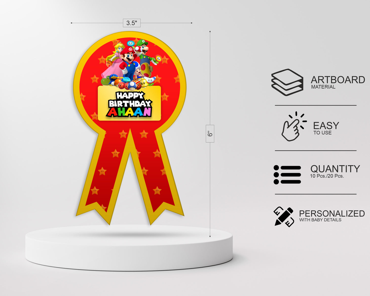This Birthday Party Badges can be customized with your birthday boy/girl name and printed in 300 GSM ART Board. You can enter customization details below before adding to cart.