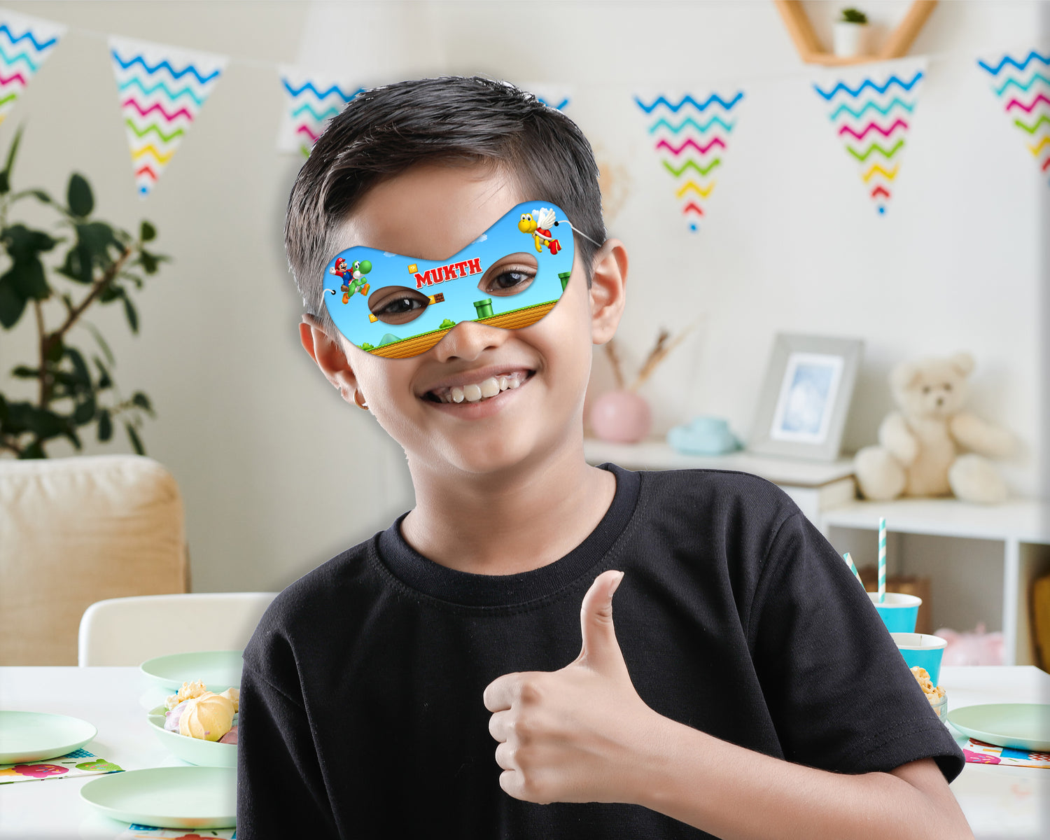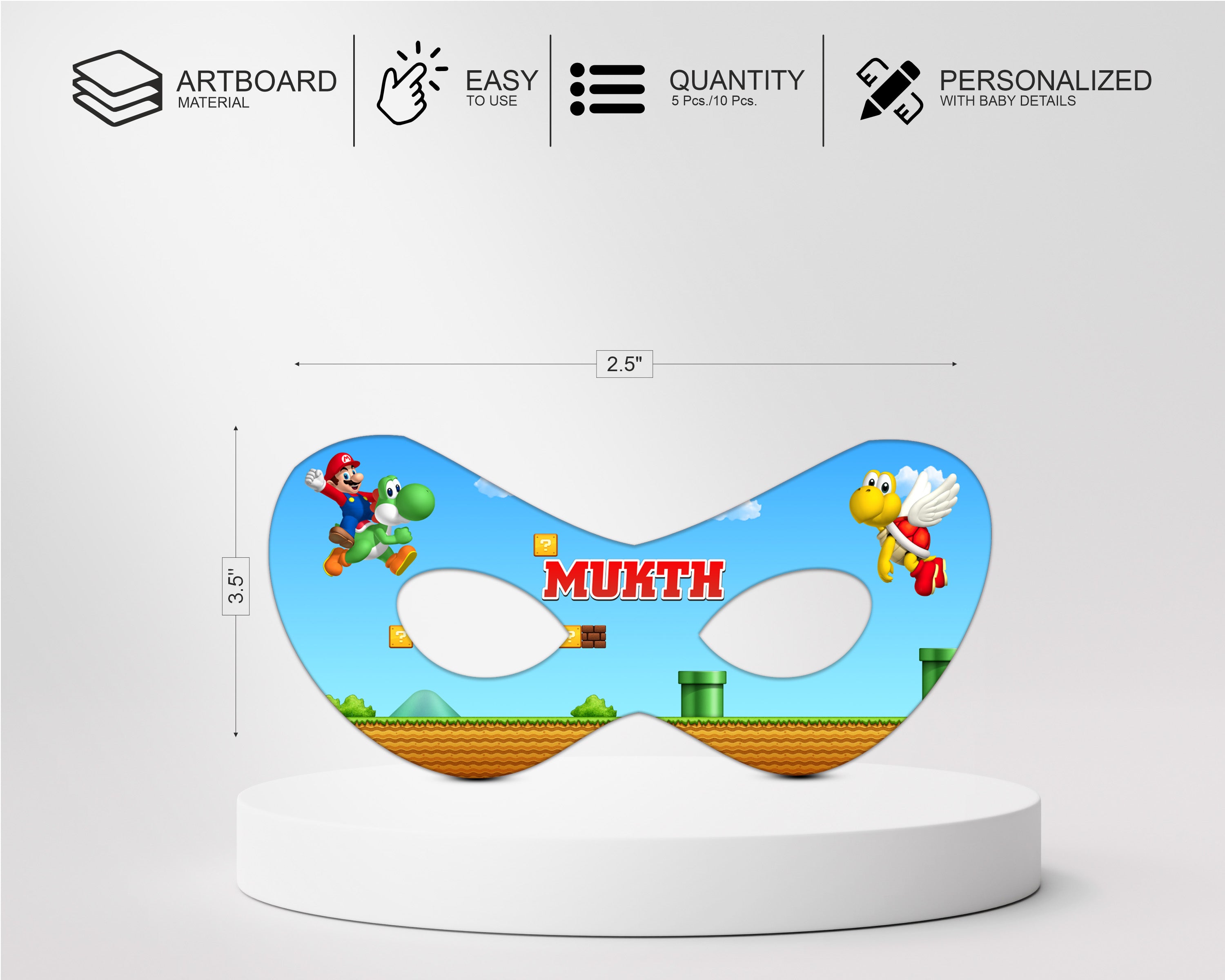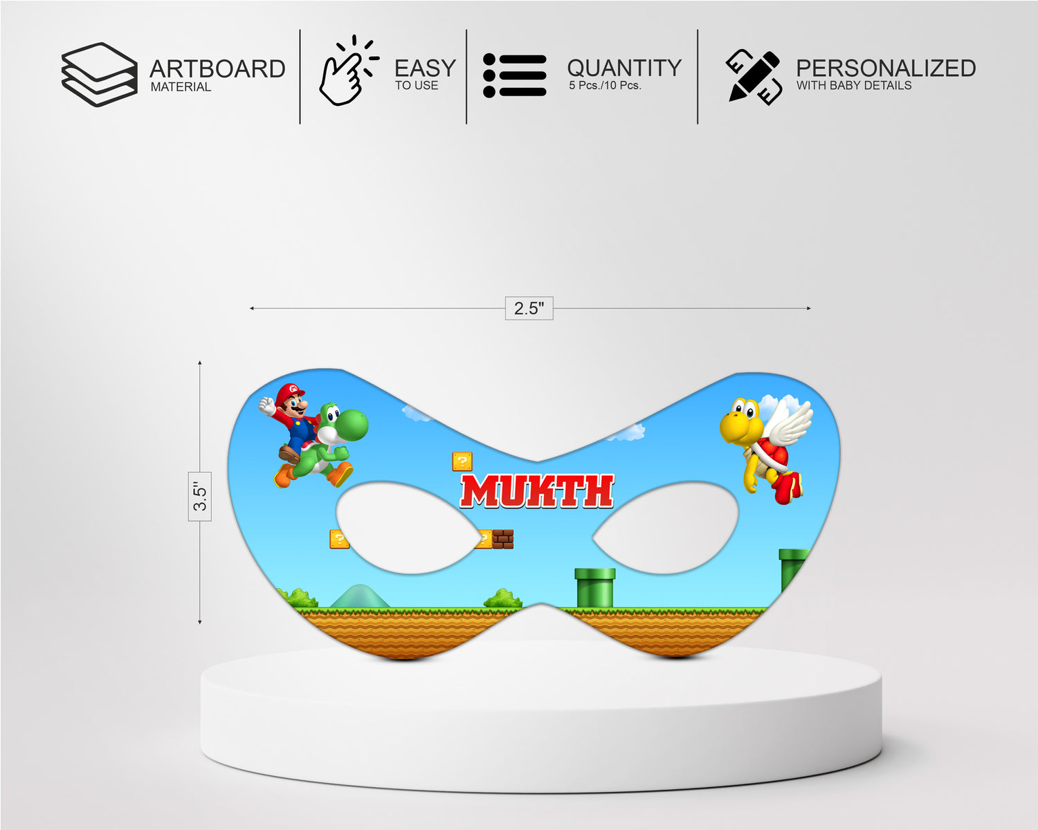 Creating colourful birthday party decoration with Super Mario theme based eyemask. Get colourfull eyemasks for birthday party event for your lovely kids . The package includes 5 - 10 Masks, each with an attached elastic string.