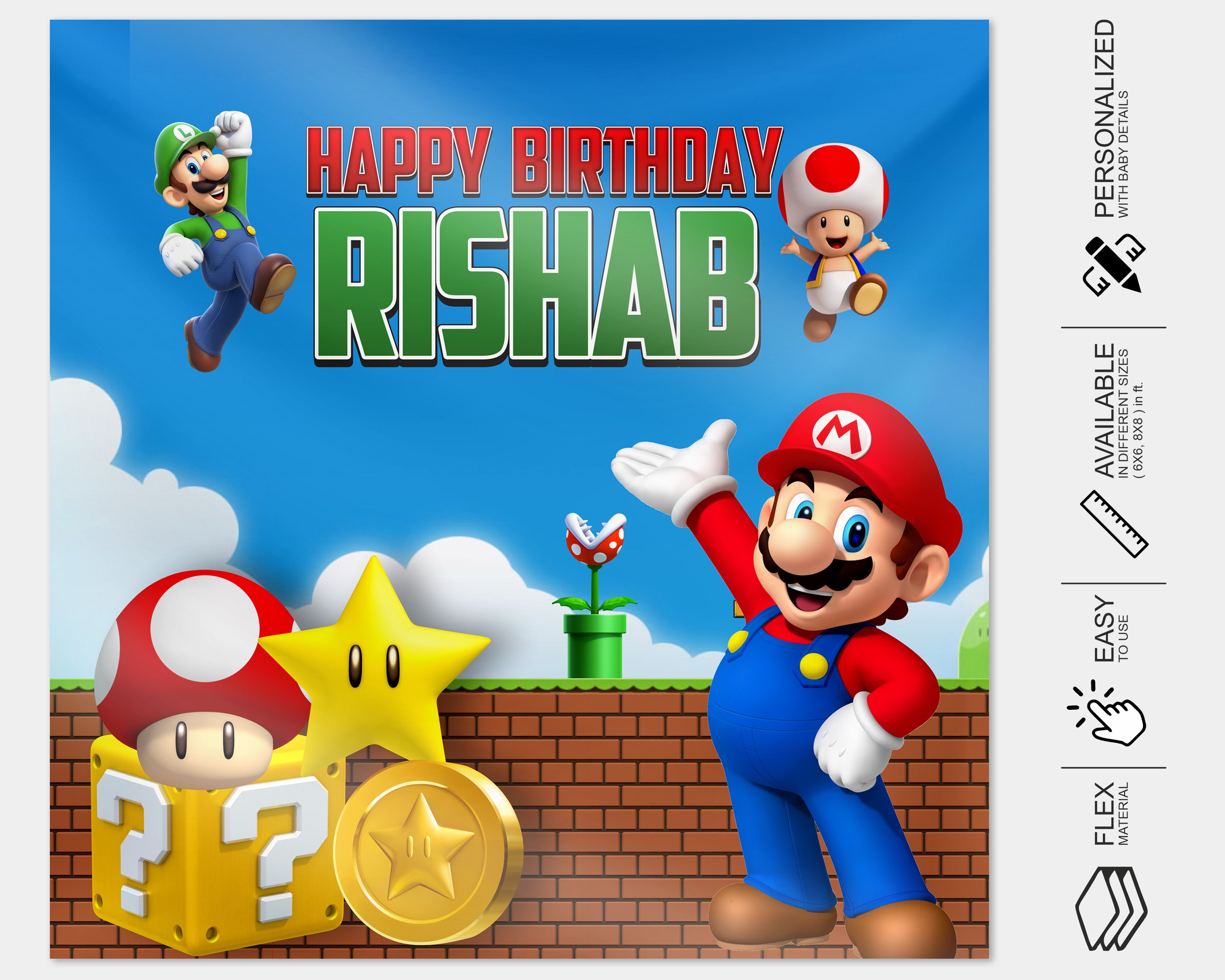 This Super Mario theme based Square Backdrop can be personalized with your baby details. You can share the baby details in form provided below. It comes with different variant sizes.