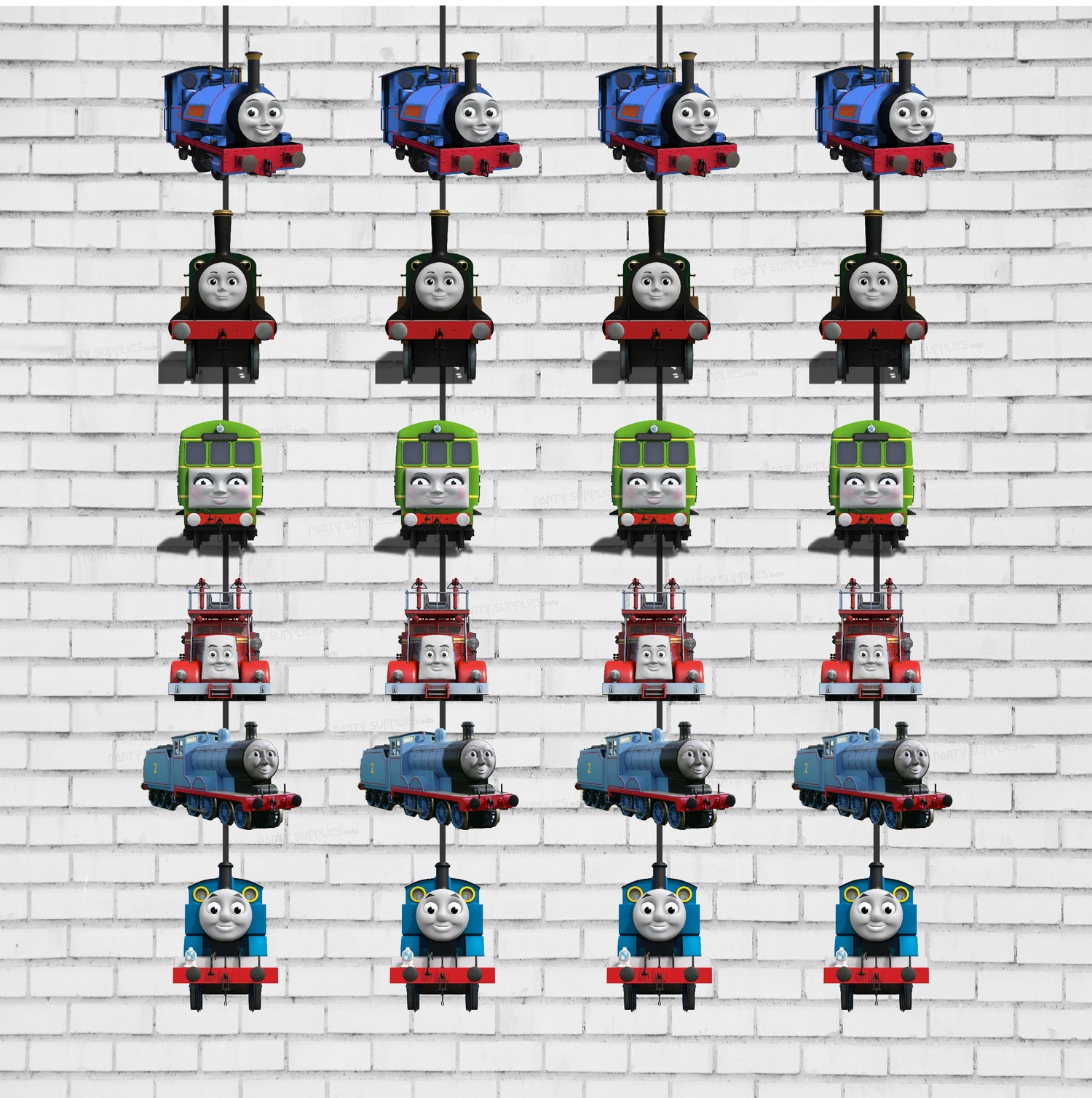 The best party decorations come from using themed party supplies in unique ways and Thomas and Friends themed Danglers will help you do just that. These party danglers can be used scattered down the center of a table or strung together to make a fun party garland banner.