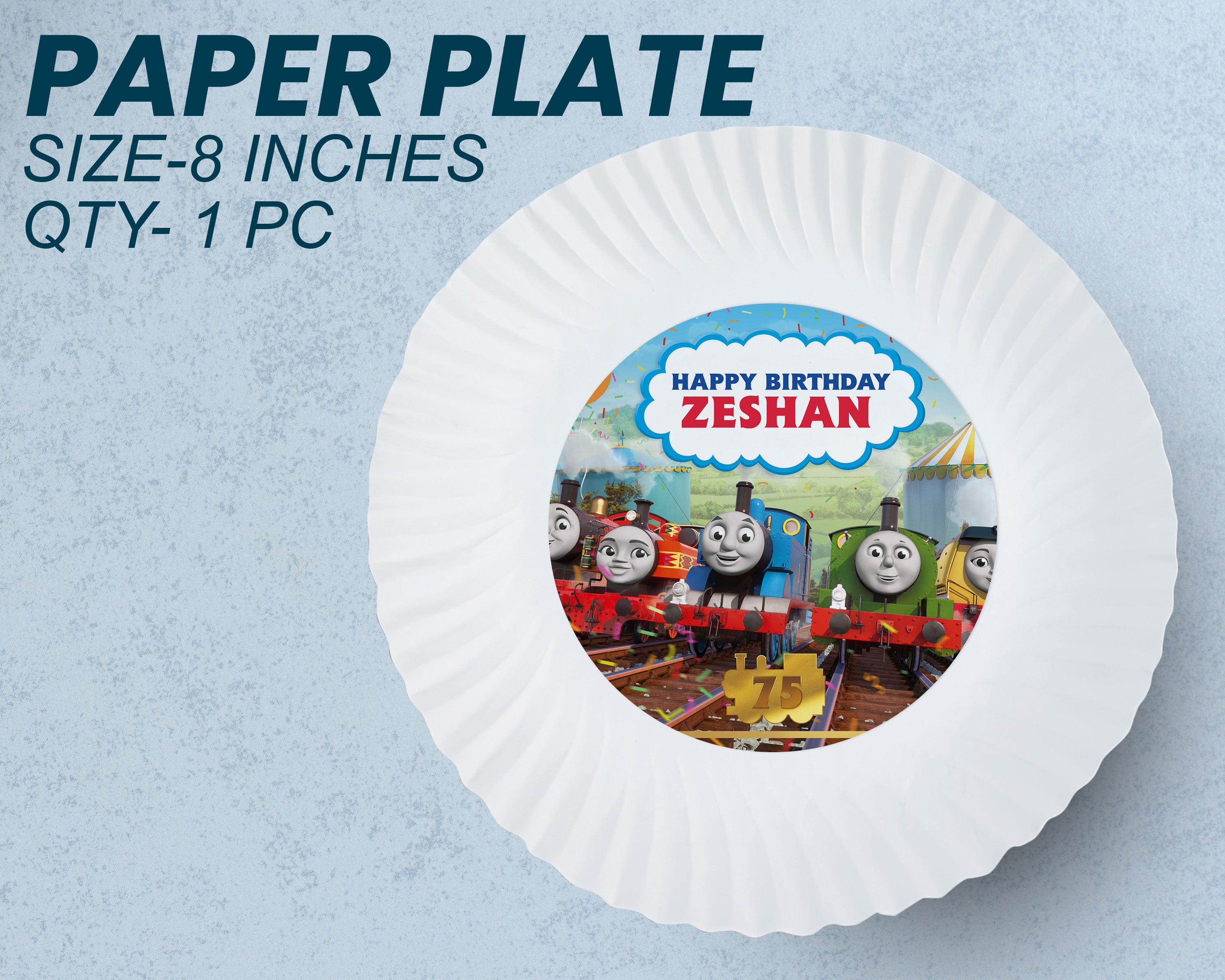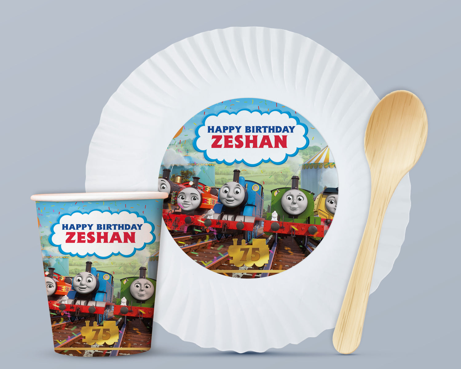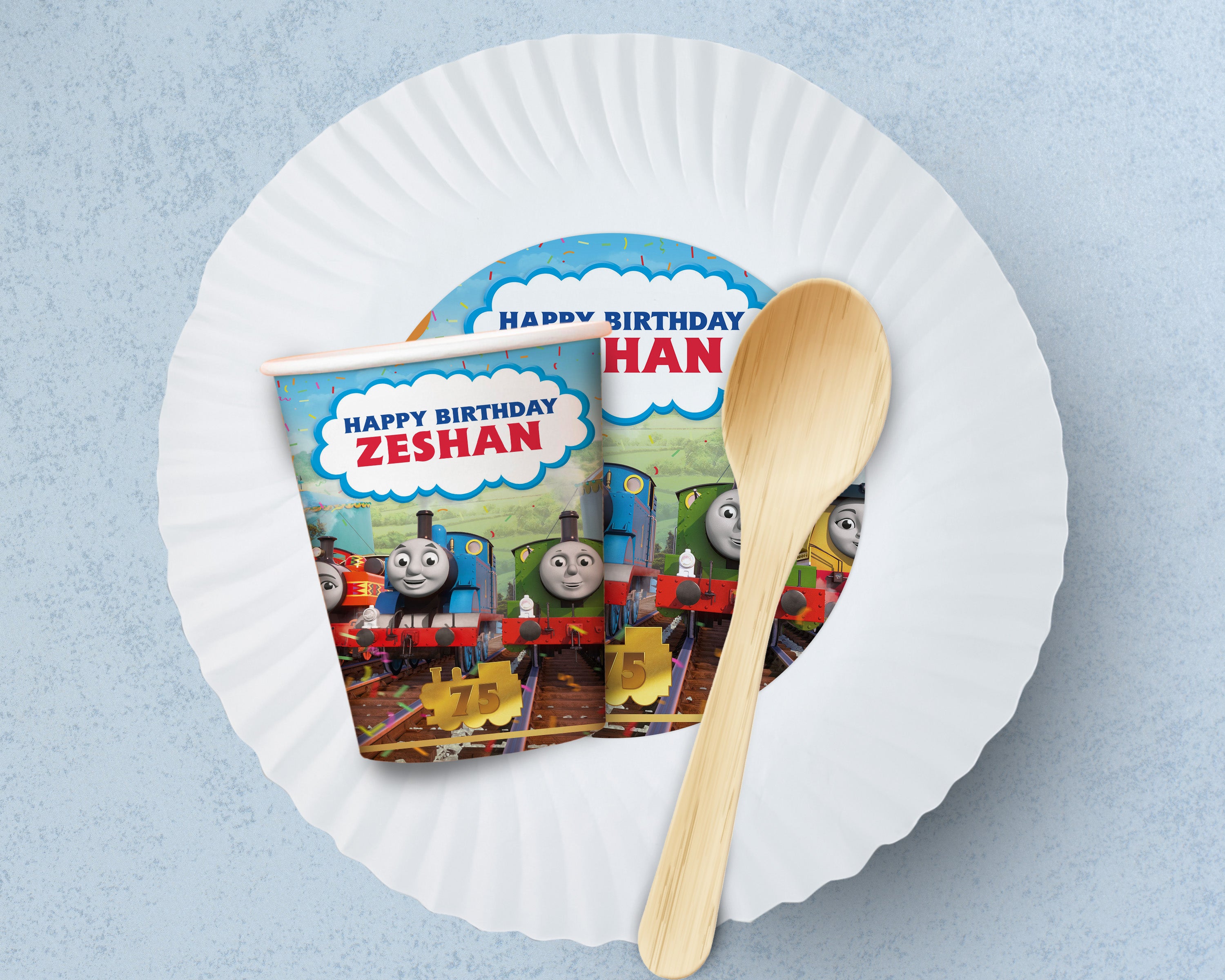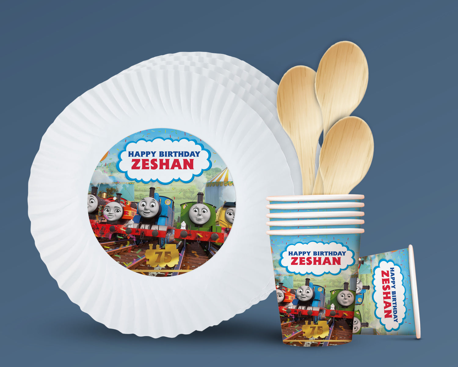 Printed party cups, plates, and plain spoon combo birthday party supplies for themed parties are available with us. They are disposable and made of eco-friendly materials. Our plates are made of thick paper, with theme-based customization including baby details added, designed, printed, and pasted onto the plates and cups as shown in the reference images. They will be available only in combo sets in the below-mentioned variants.