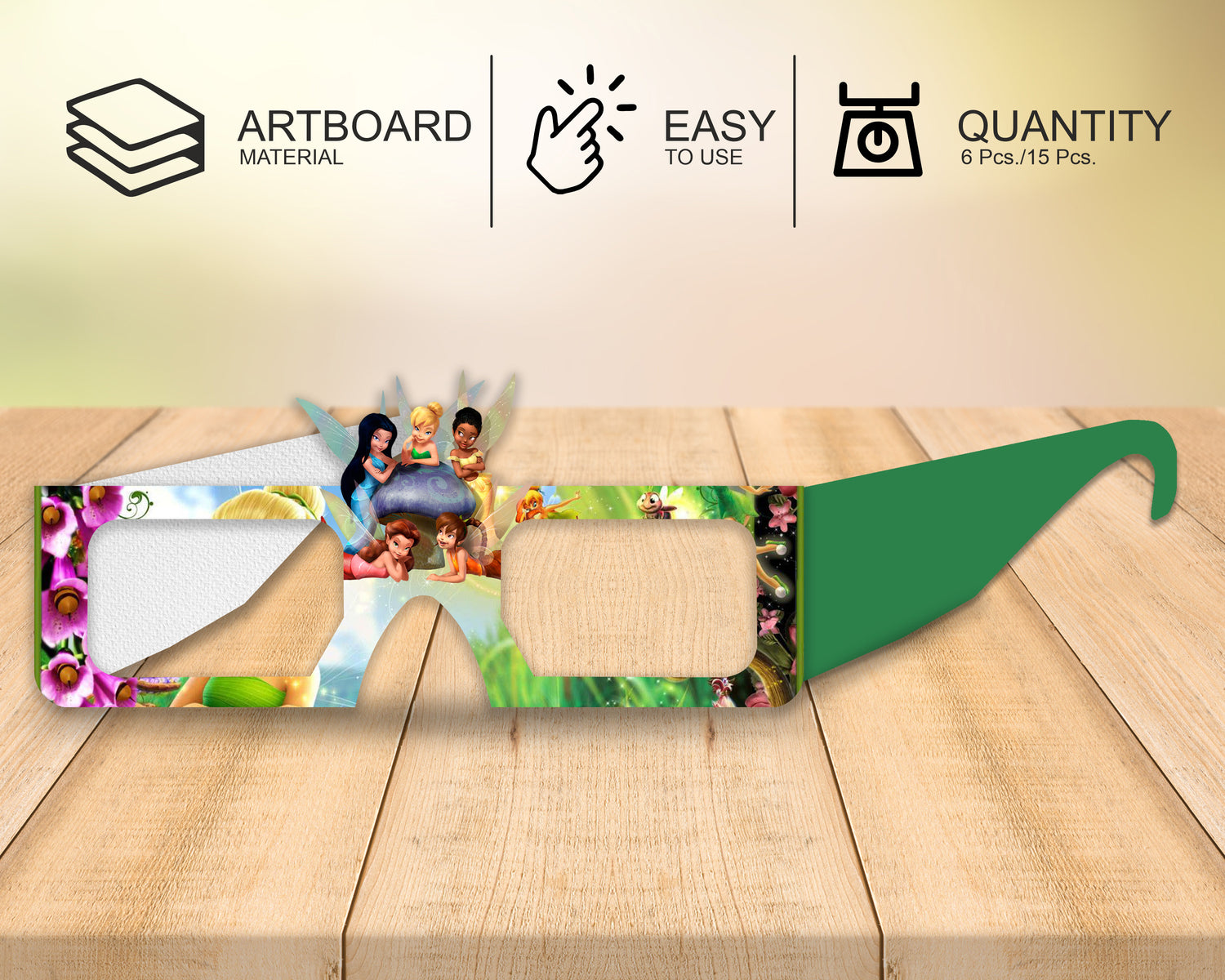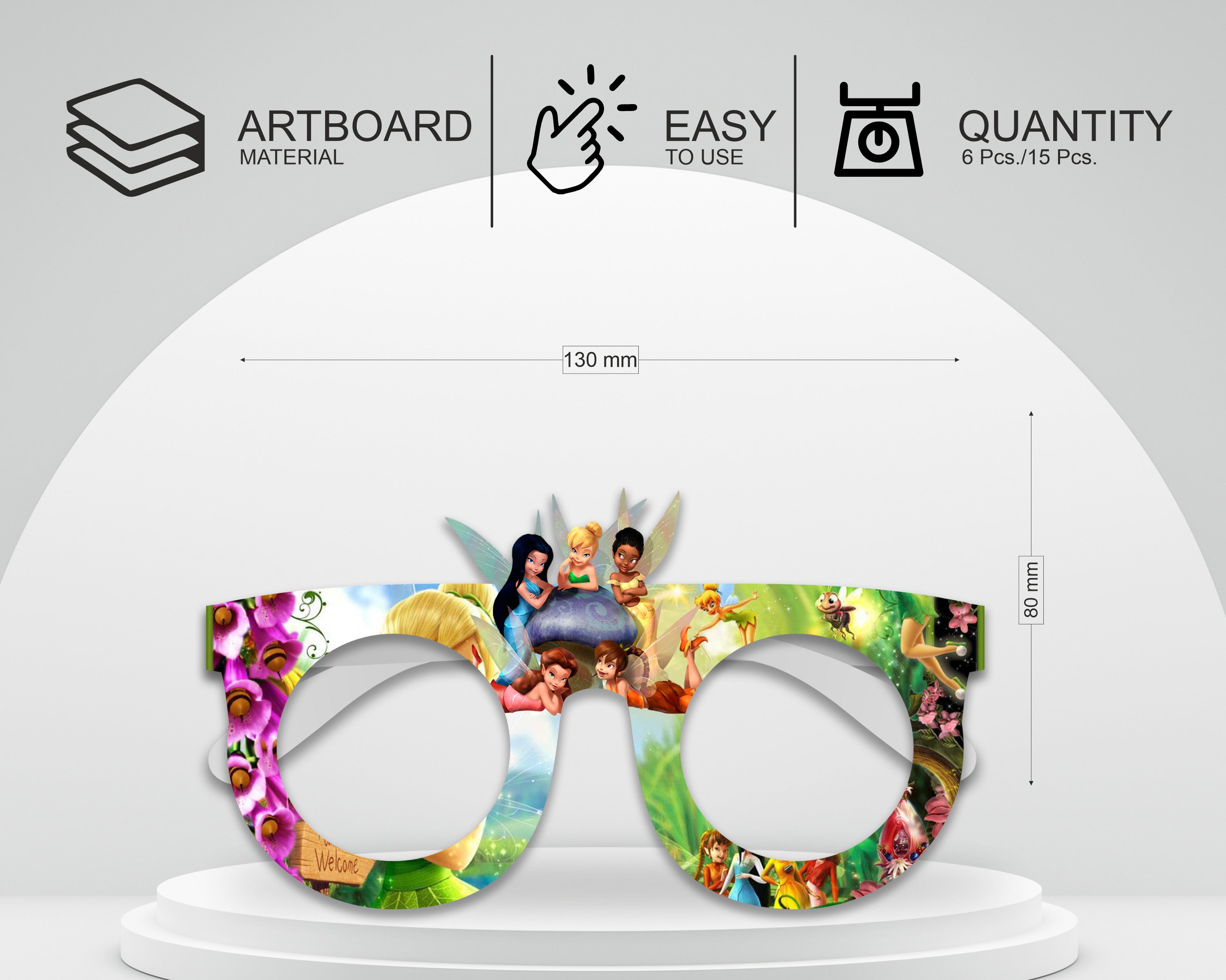 Tinker Bell Theme based eye glasses made of thick paper material for kids birthday party celebrations. This paper goggles suits perfect for kids.