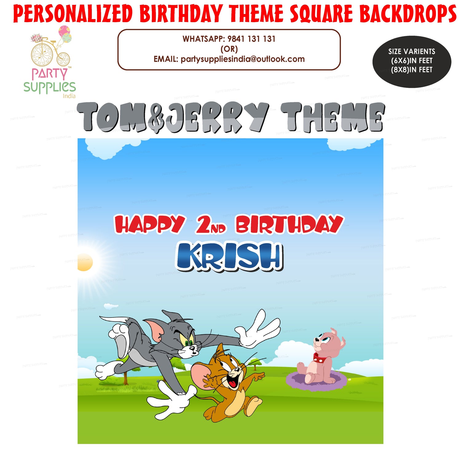This Tom & Jerry theme based Square Backdrop can be personalized with your baby details. You can share the baby details in form provided below. It comes with different variant sizes.