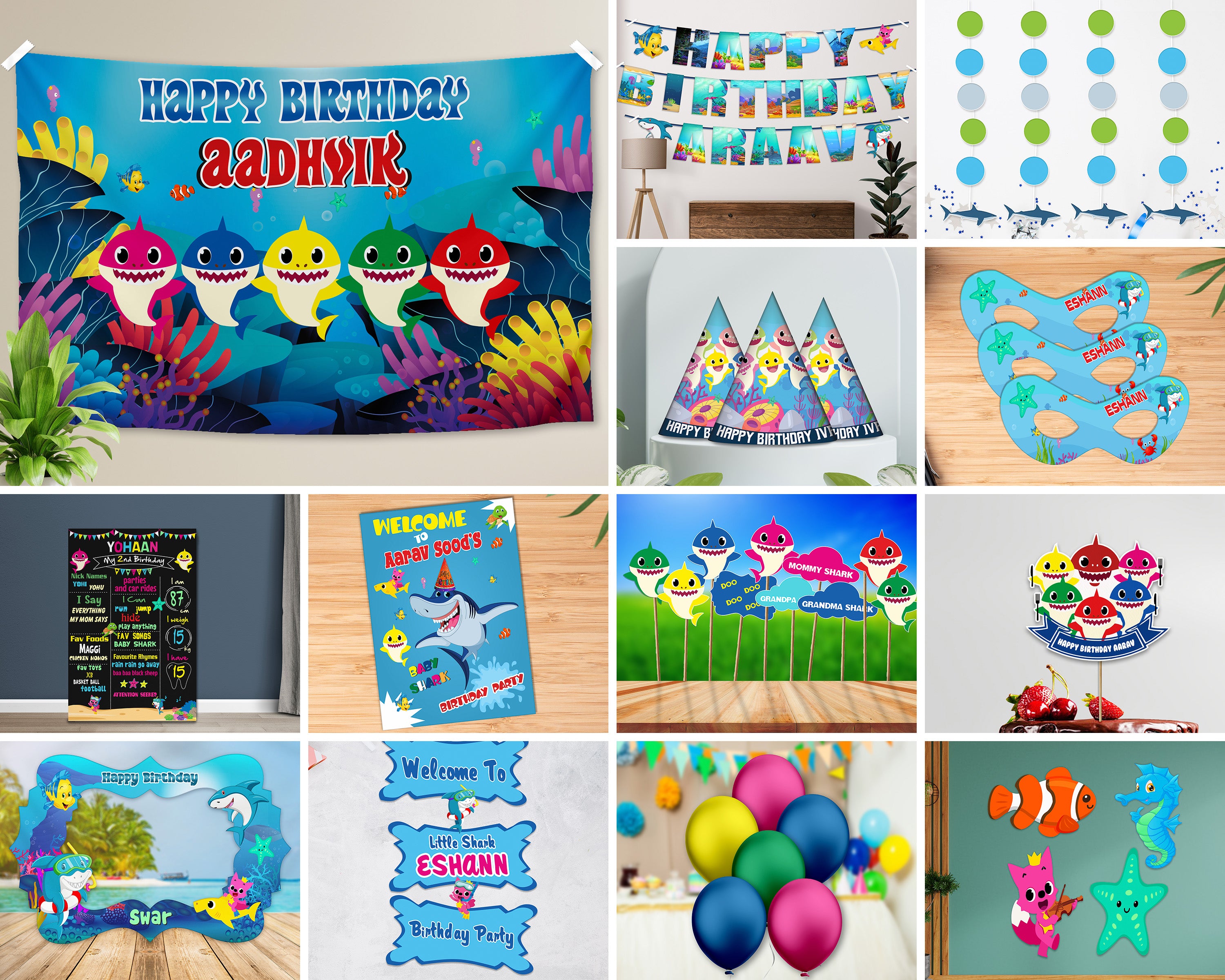 Take an adventure into the sea with Baby Shark as he joins his friend Pink fong to sing and dance through some of favorite new and classic songs! It's time to sing and dance to the Baby Shark song with your favorite Shark Family! This Baby Shark birthday collection is party planning made simple. Your celebration essentials like decorations will be designed by our team, so all you have to do is focus on how you’re going to bring the fun.