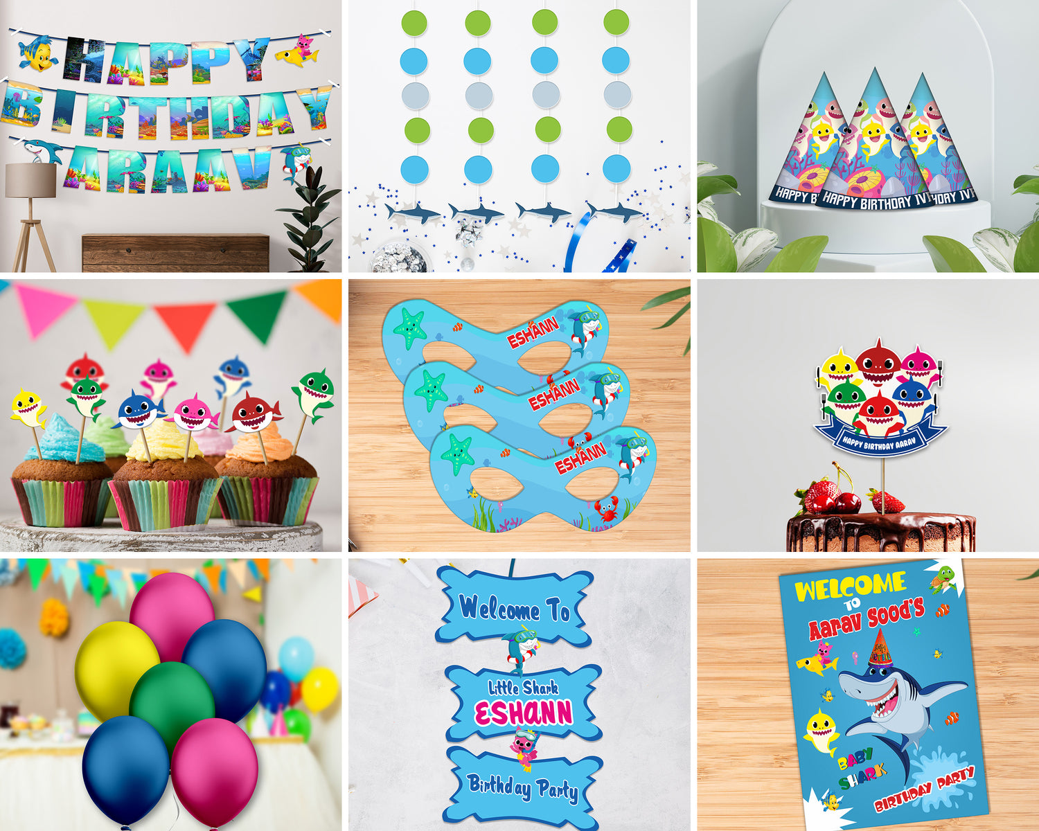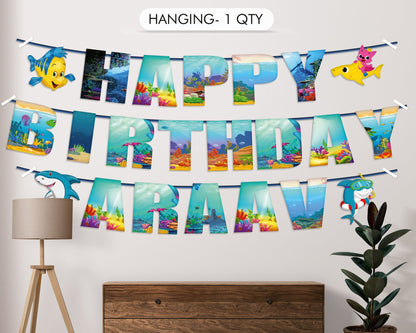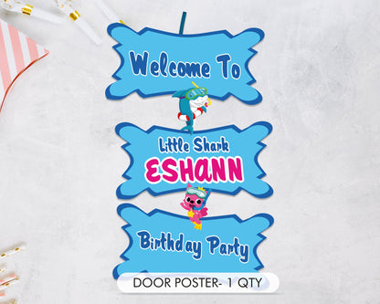 Take an adventure into the sea with Baby Shark as he joins his friend Pink fong to sing and dance through some of favorite new and classic songs! It's time to sing and dance to the Baby Shark song with your favorite Shark Family! This Baby Shark birthday collection is party planning made simple. Your celebration essentials like decorations will be designed by our team, so all you have to do is focus on how you’re going to bring the fun. Preferred Kit is Available for Shark Boy Theme.