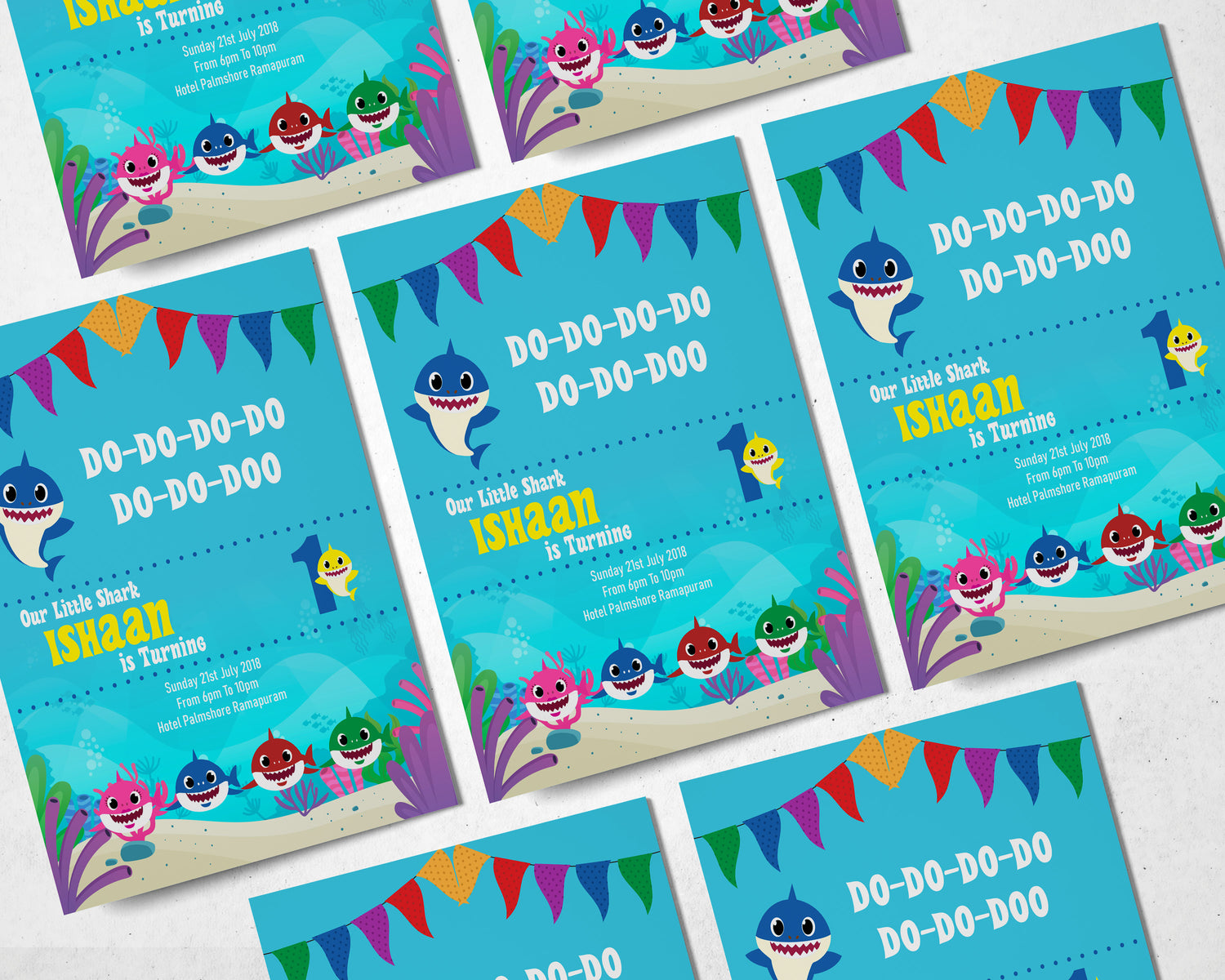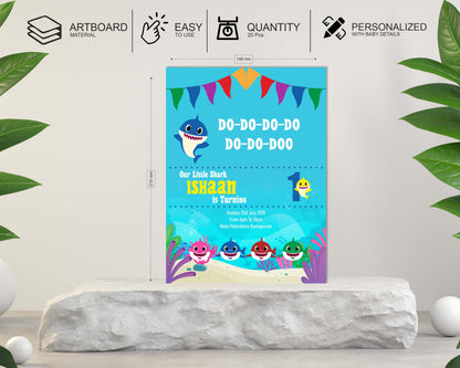 Let us start the birthday bash with the party invite. The theme based invite would help the invitees be prepared with mood set for a wonderful party. The Baby Shark party invite can be personalized with your kid's name ,family details , date, venue and more. The cute looking shark adds charm to the invite. Since the invite is customized and printed in-house we do not provide envelop.