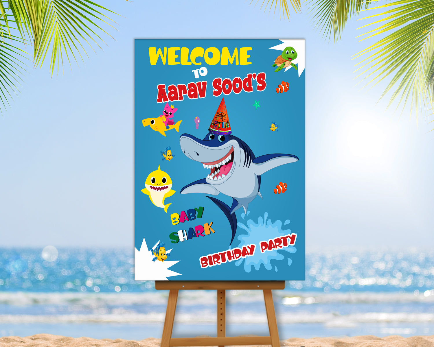 A great way to welcome the guests by giving a glimpse of the Baby Shark Theme is to have this Welcome Board. Customise the Welcome Board by adding the kids's name and pictures of your choice.