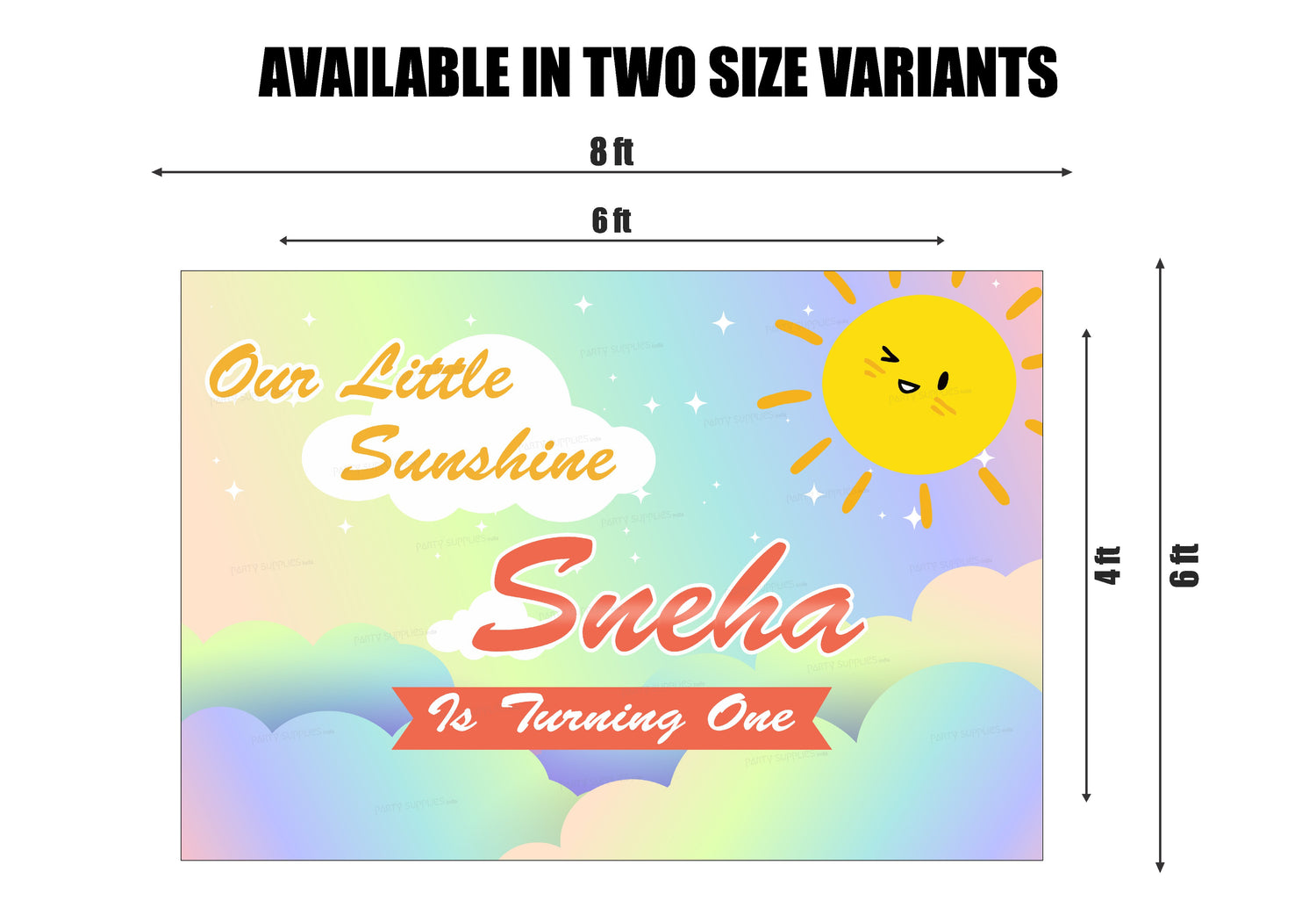 This backdrop features Sunshine theme, plus a beautiful frame to wish Happy Birthday to the birthday boy... Suitable for both indoors and outdoors, this lightweight banner can be easily pinned or taped to the wall. You can also add few props to this Backdrop to create the perfect setting for photos or for cake table.