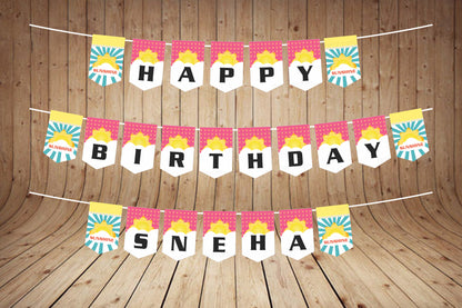 Begin styling an impressive birthday party when you choose a personalized bunting banner! The vivid colors and fun design will greet all of your party guests as they enter. As always, personalization is free! Customise the You Are My Sunshine Birthday Party Bunting Banner comes with “Happy Birthday”.